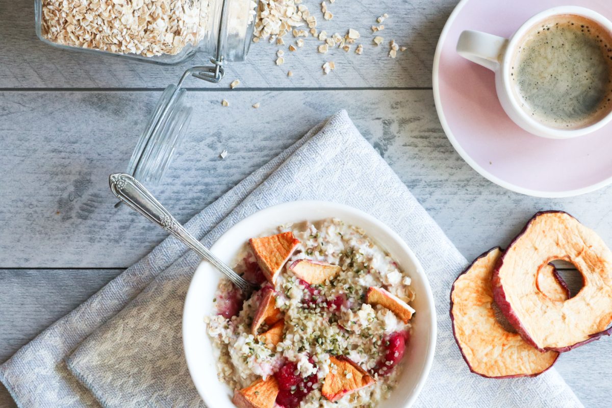 Gruau de la veille aux pommes, fraises & graines de chanvre