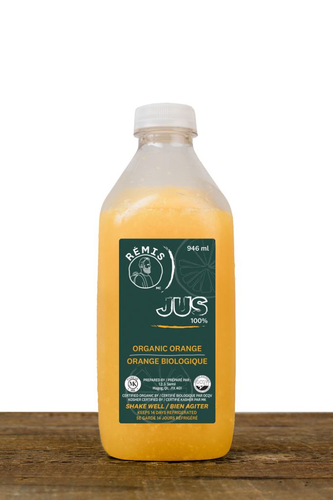 RÉMIS JUS orange biologique pur frais pressé.